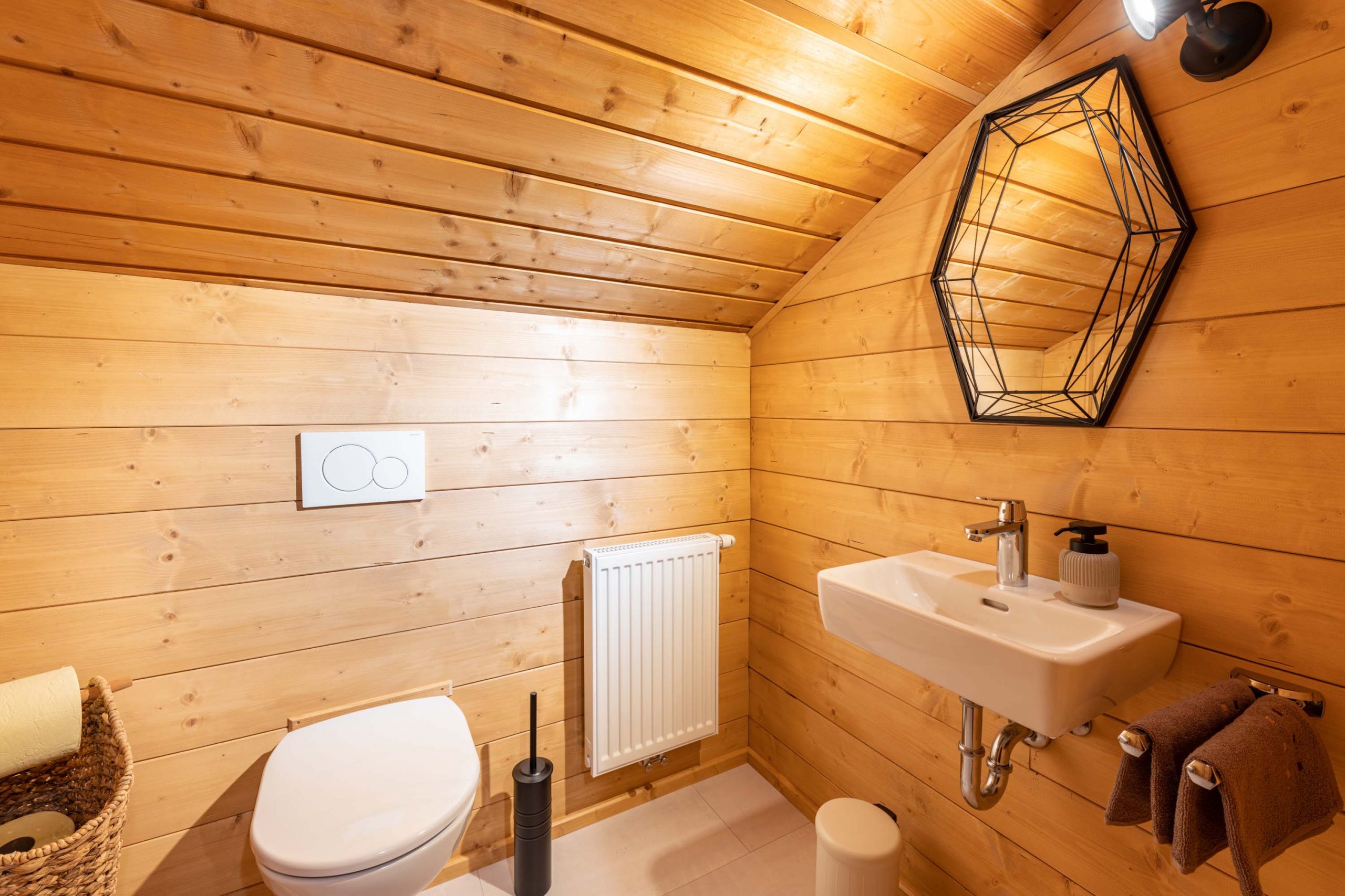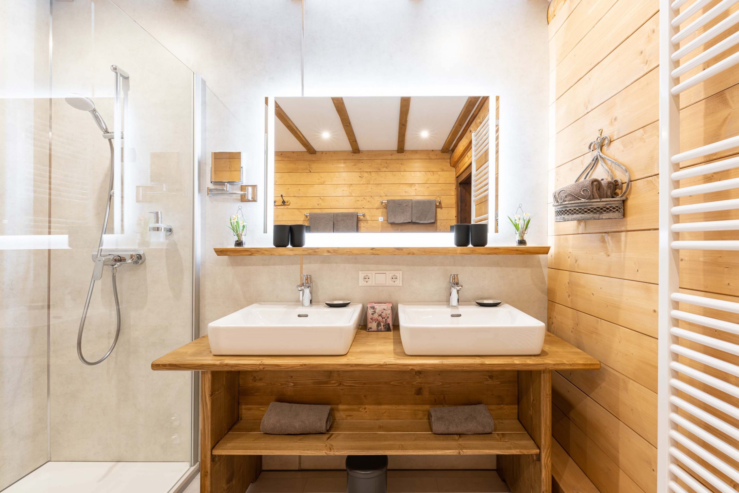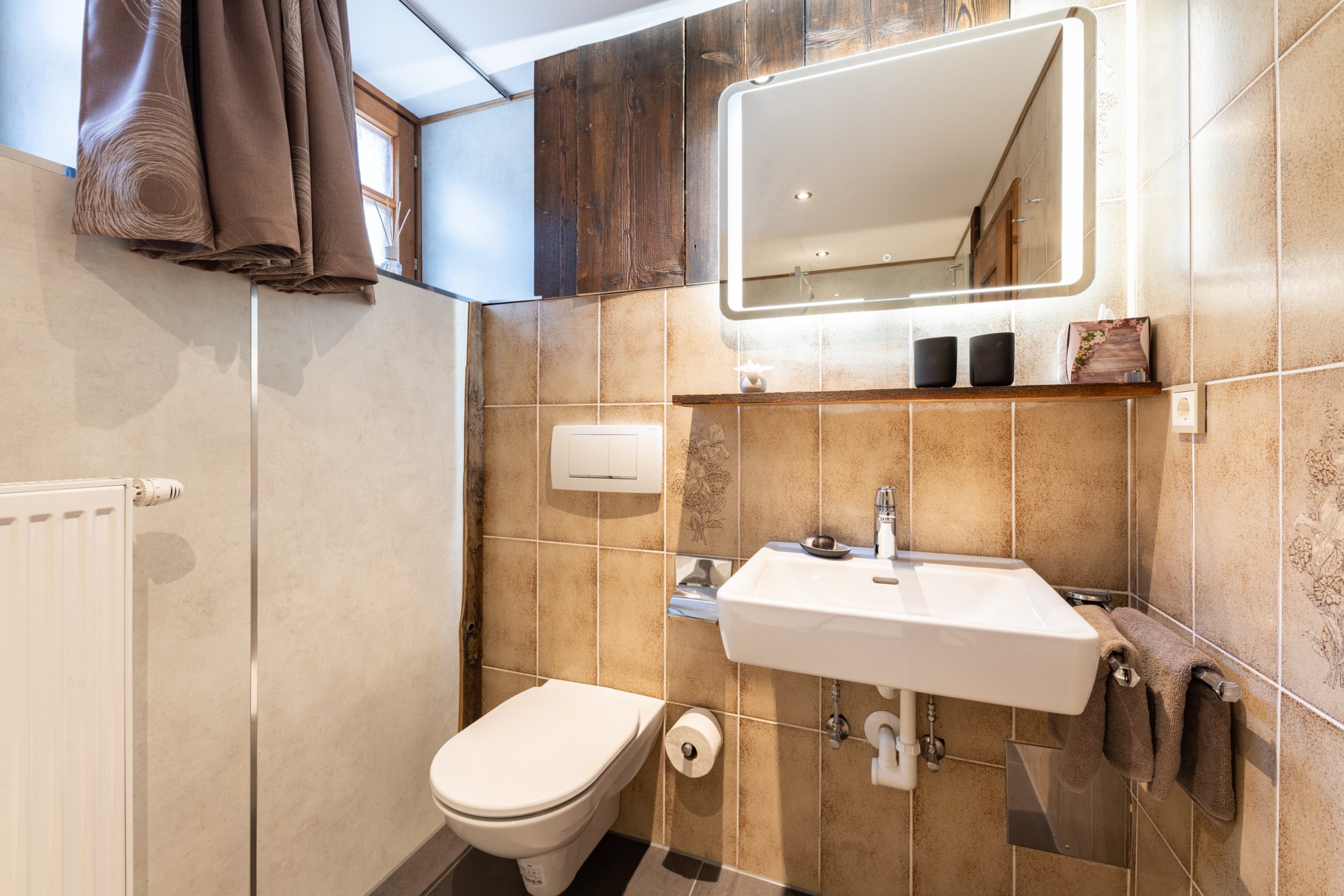 A relaxation oasis has been created on 50 sqm. The Appartment offers enough space for up to 3 persons. The spacious living area with tiled stove is the perfect place to warm up in cold winter nights or just to relax after a long day skiing. If you don’t like to go out for dinner, you can use the well equiped kitchen. It offers a two plate ceramic hob, a dishwasher, a sink, a coffee machine, a kettle and a refrigerator. The dining area of the living room is the percent place to enjoy your dinner. The couch next to the tiled stove can be easily converted into a third bed. The large bedroom is an ideal choice to enjoy your long nights sleep . There is enough storage for your personal belongings. Next to the bedroom there is the modern-designed bathroom.