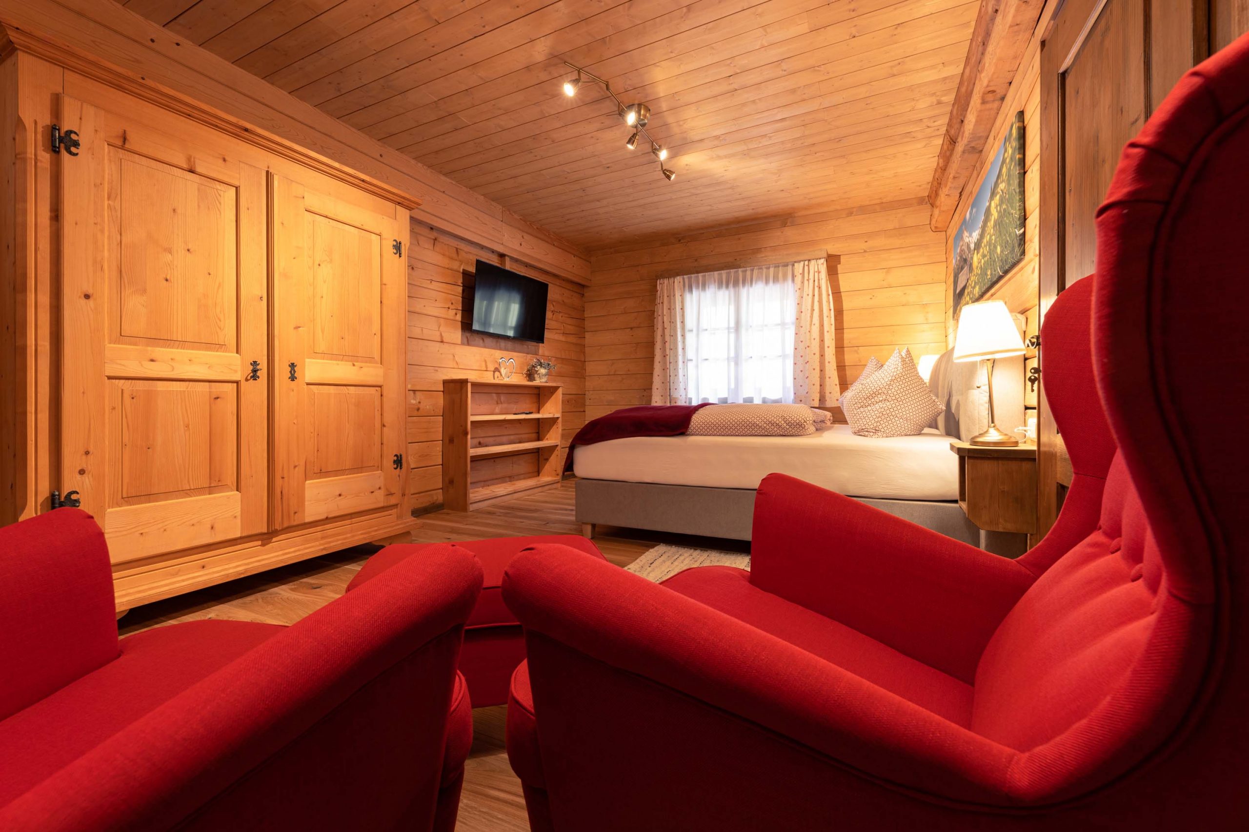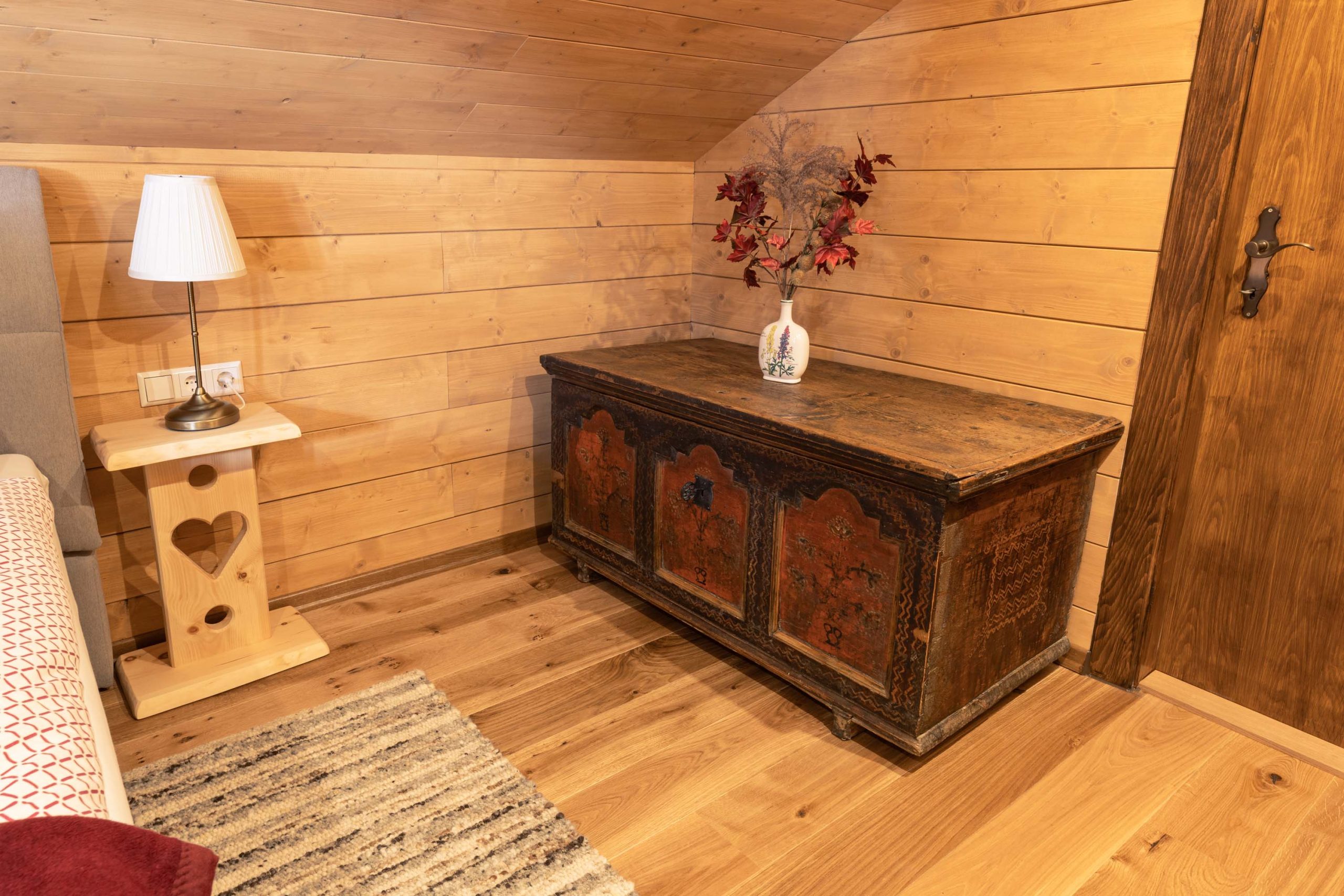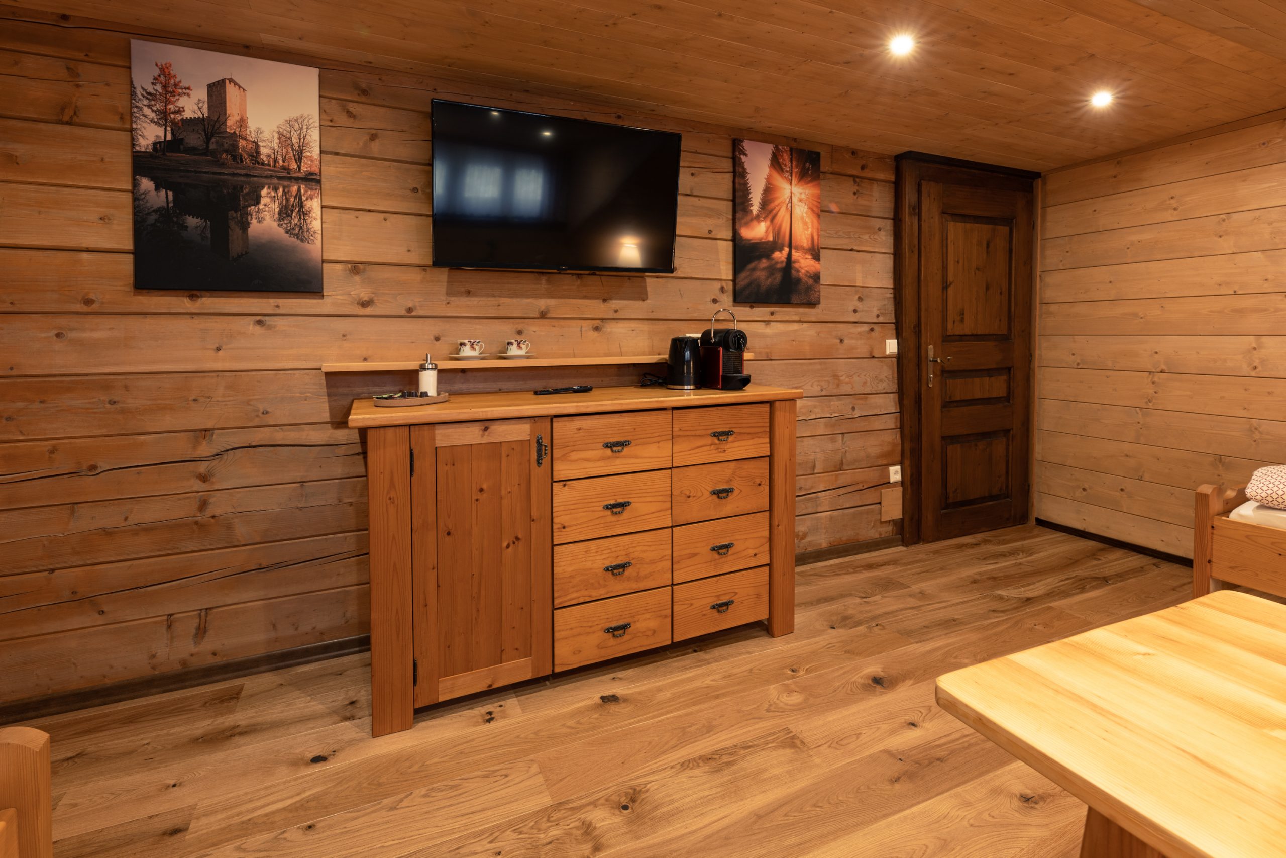 Our Gute Stube is a fully wooden room with 18sqm. There you can enjoy the breathtaking view of the Kaiserburg. There is enough storage for your personal belongings.