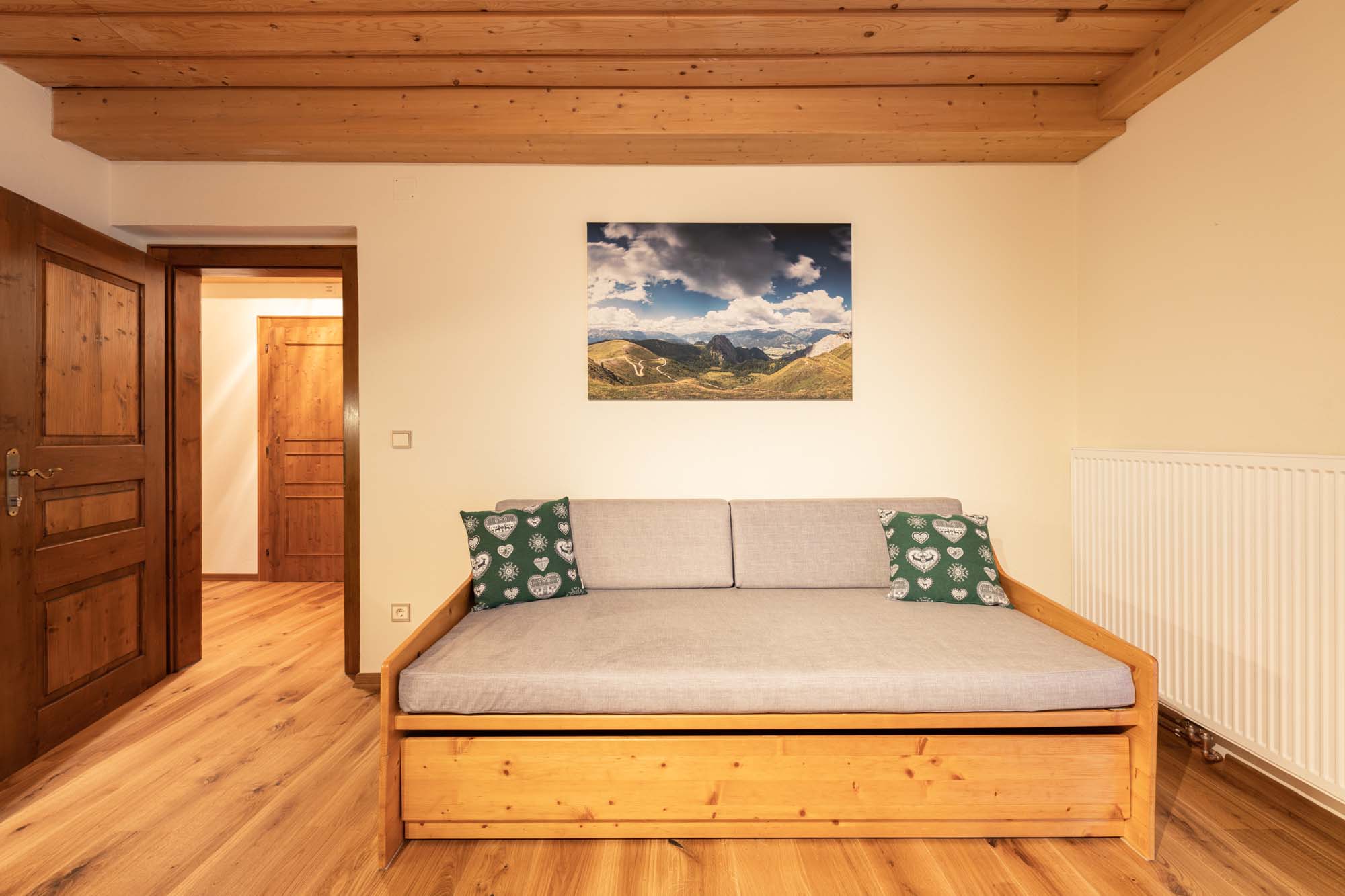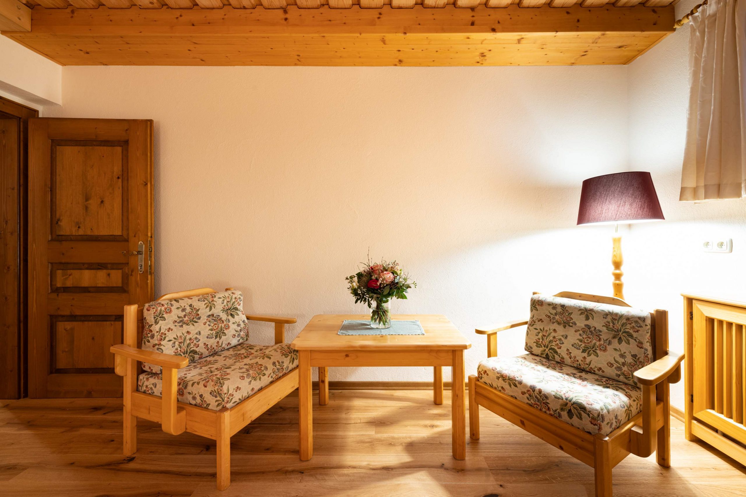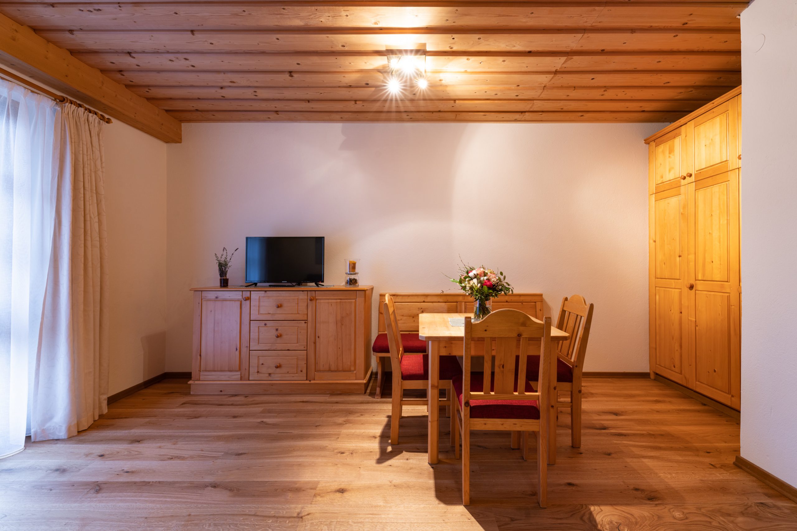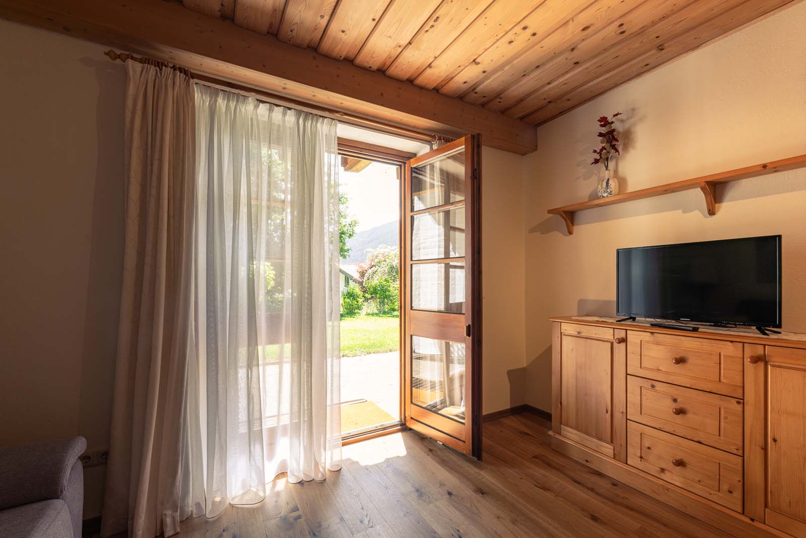 Our Gute Stube is a fully wooden room with 18sqm. There you can enjoy the breathtaking view of the Kaiserburg. There is enough storage for your personal belongings.