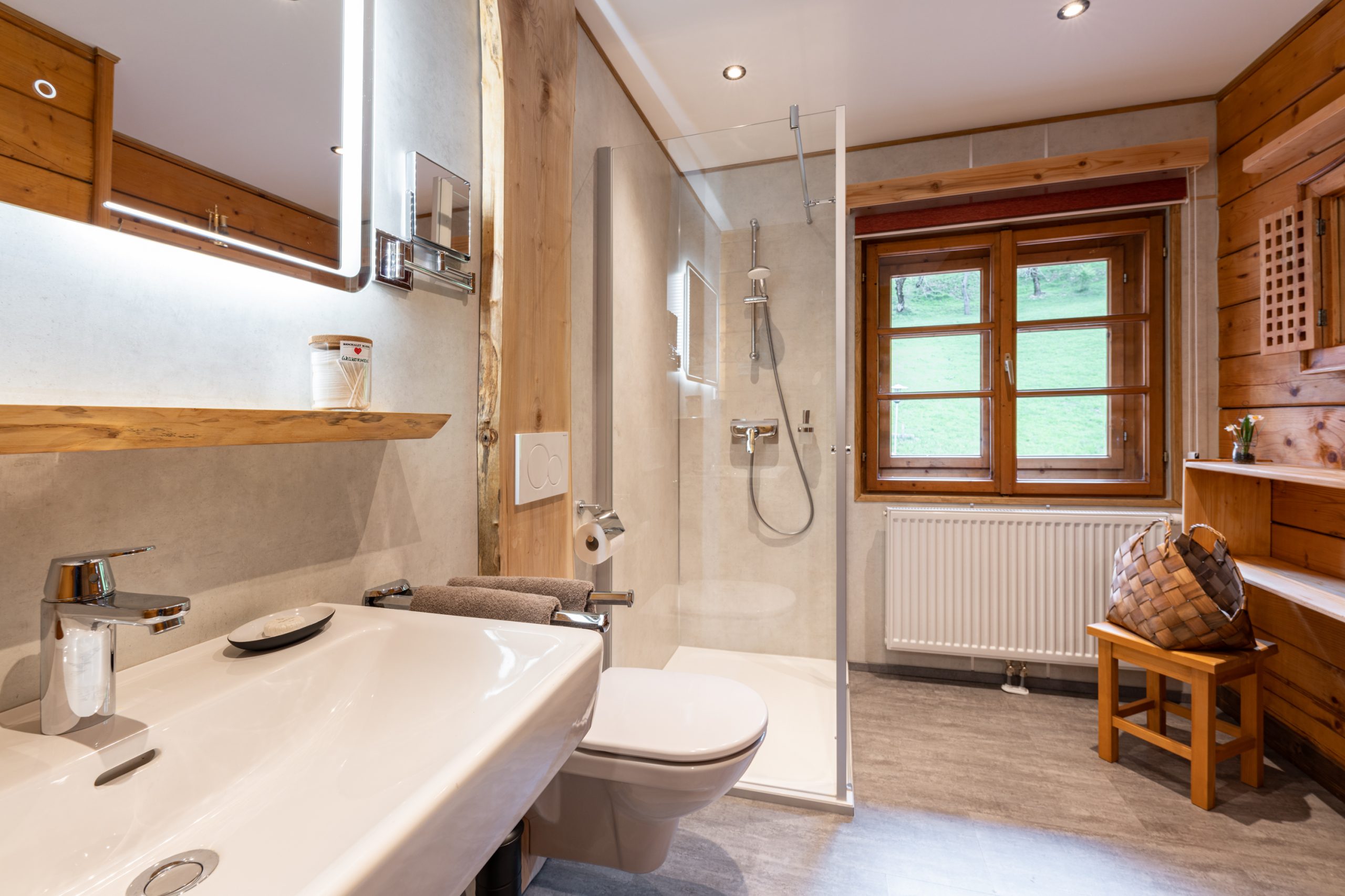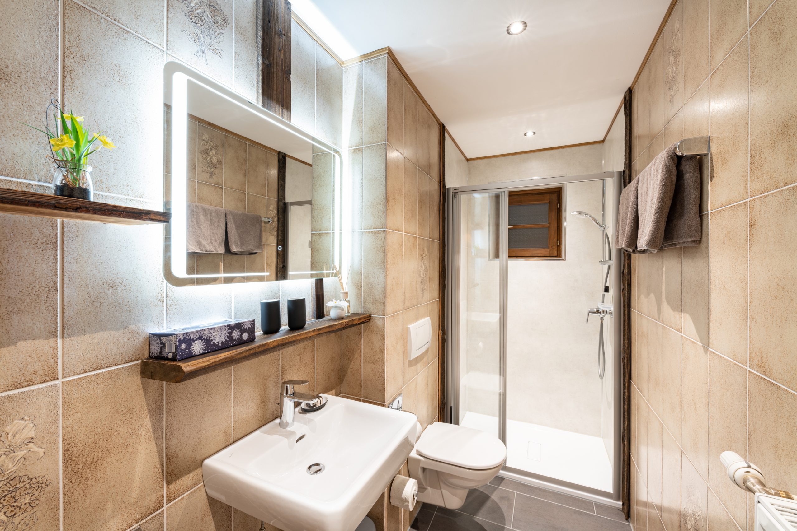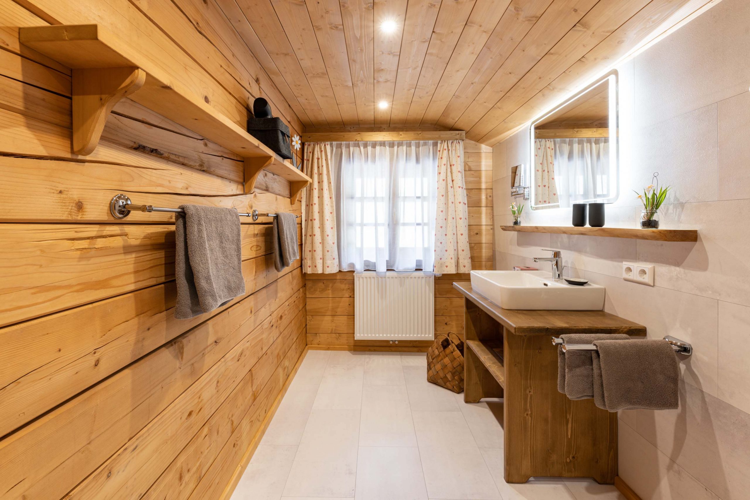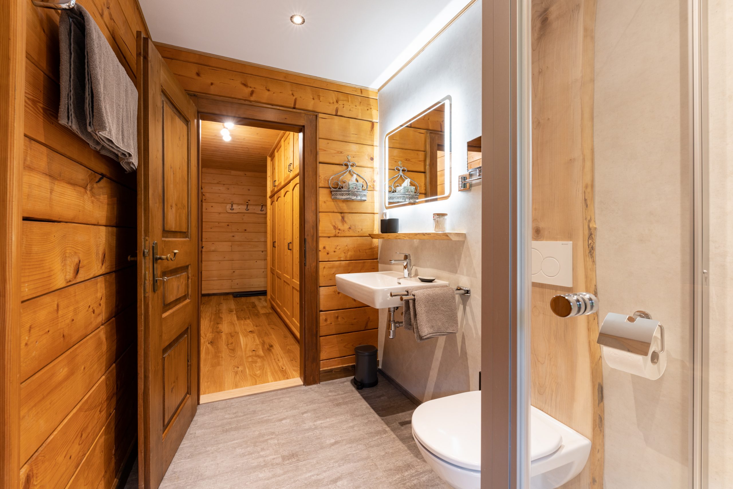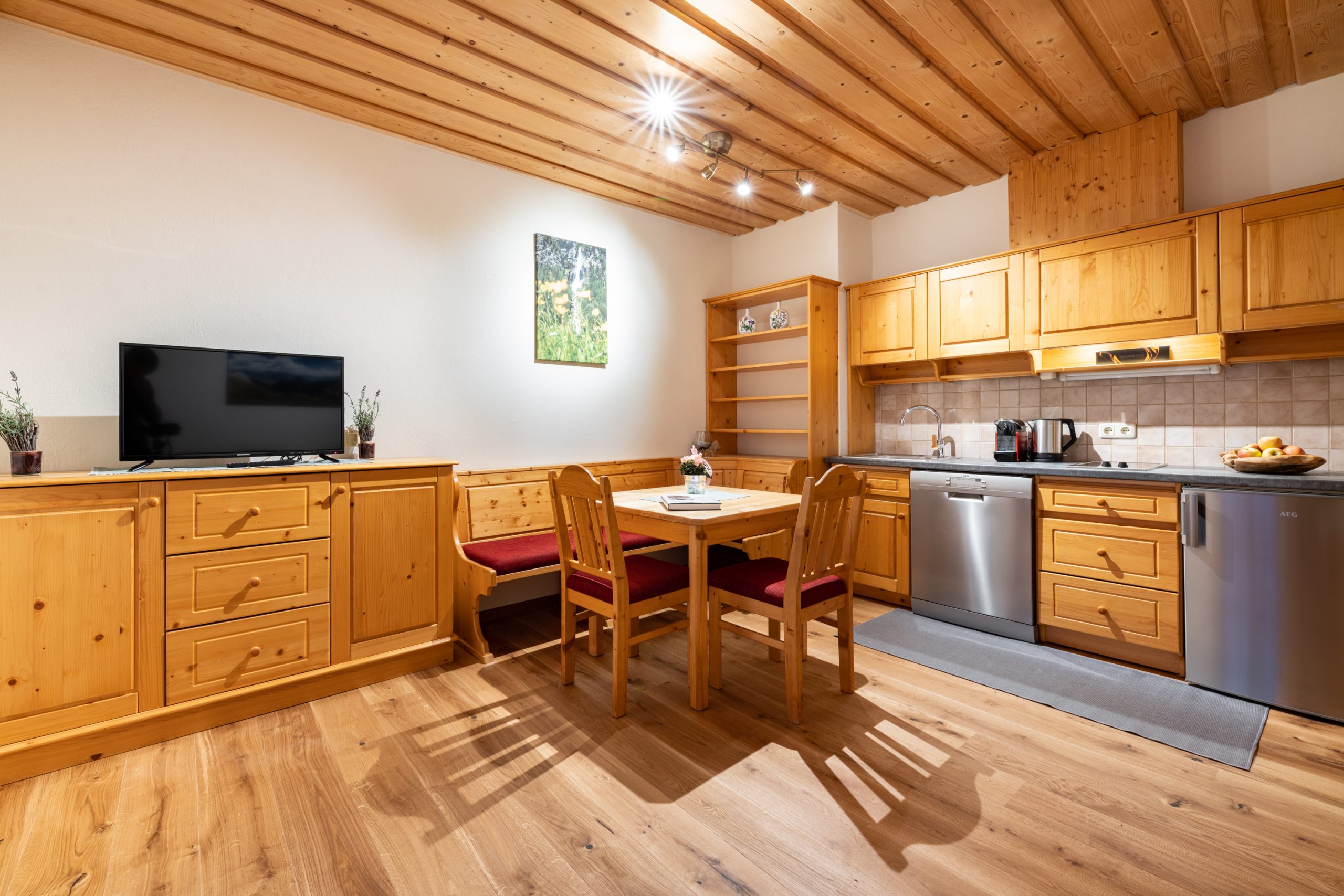 The fully wooden apartment with a large balcony is located in the attic of our house. There you can enjoy the breathtaking view of the Kaiserburg. The 90 sqm appartement offers enough space for 4 people to relax and feel good. Two separate bedrooms with box spring beds and direct view of the ski slope promise a relaxing night. The closet room with large boxes offer enough storage space. The spacious bathroom, designed with great attention to detail, guarantees a good start into the day. The toilet is separate.